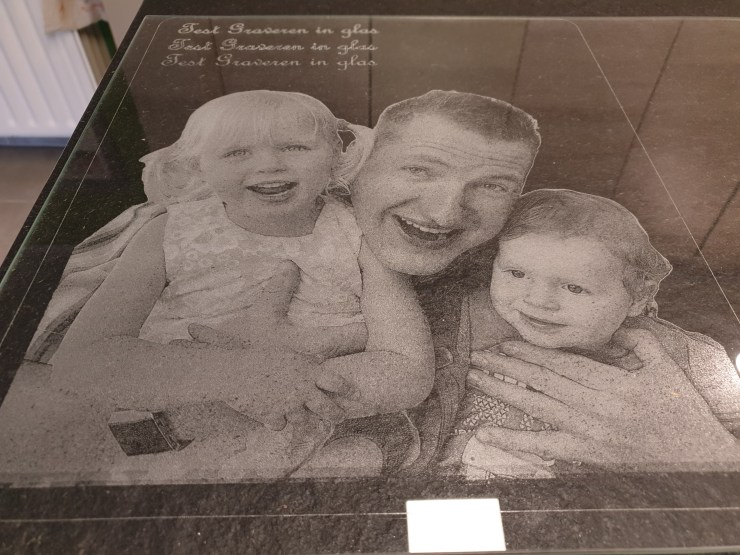 Graveren tekst en foto op vlak glas