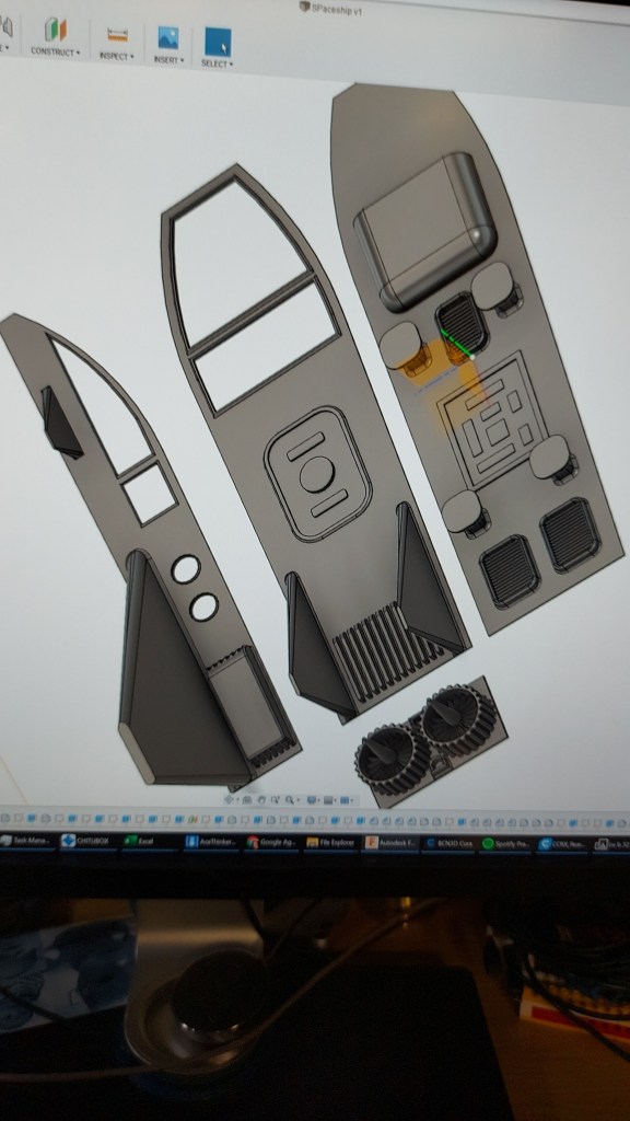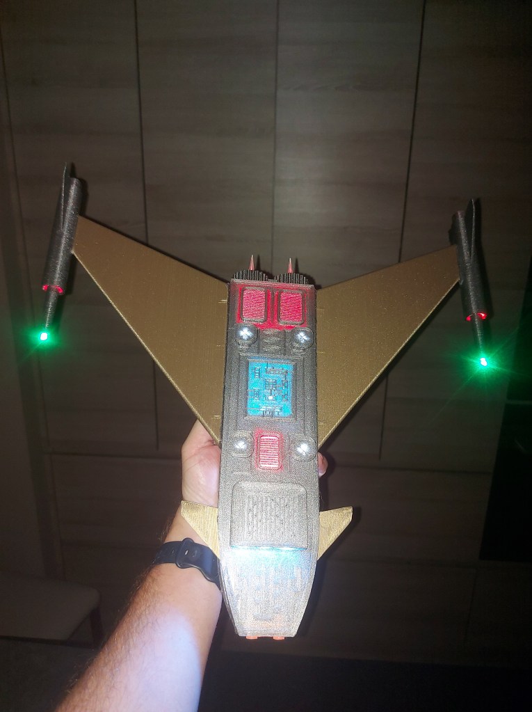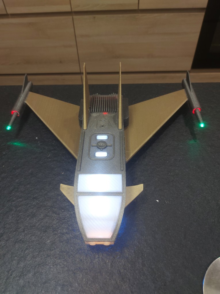 Ruimteschip 3D printed met interne LED verlichting
