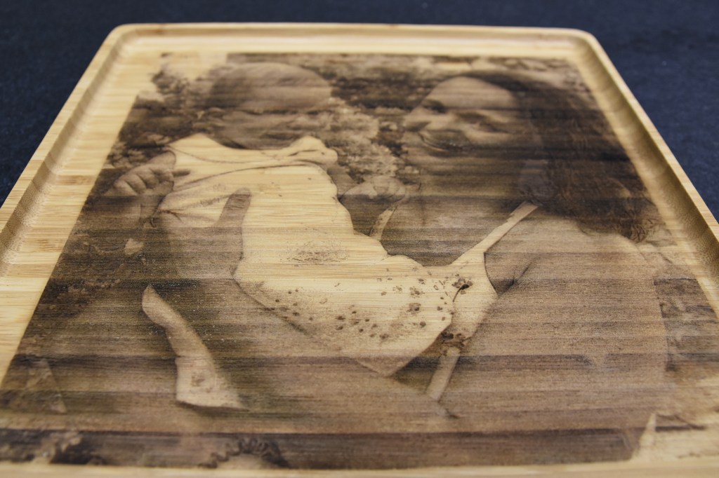 Graveren is tekst en/of een afbeelding/foto aanbrengen op het materiaal. De laser brandt het materiaal met zeer hoge precisie weg waardoor een heel mooi diepte-effect ontstaat, vooral in hout. Door te spelen met sterktes, extra uitbranden van omlijningen, … kunnen hele mooie details en resultaten verkregen worden.