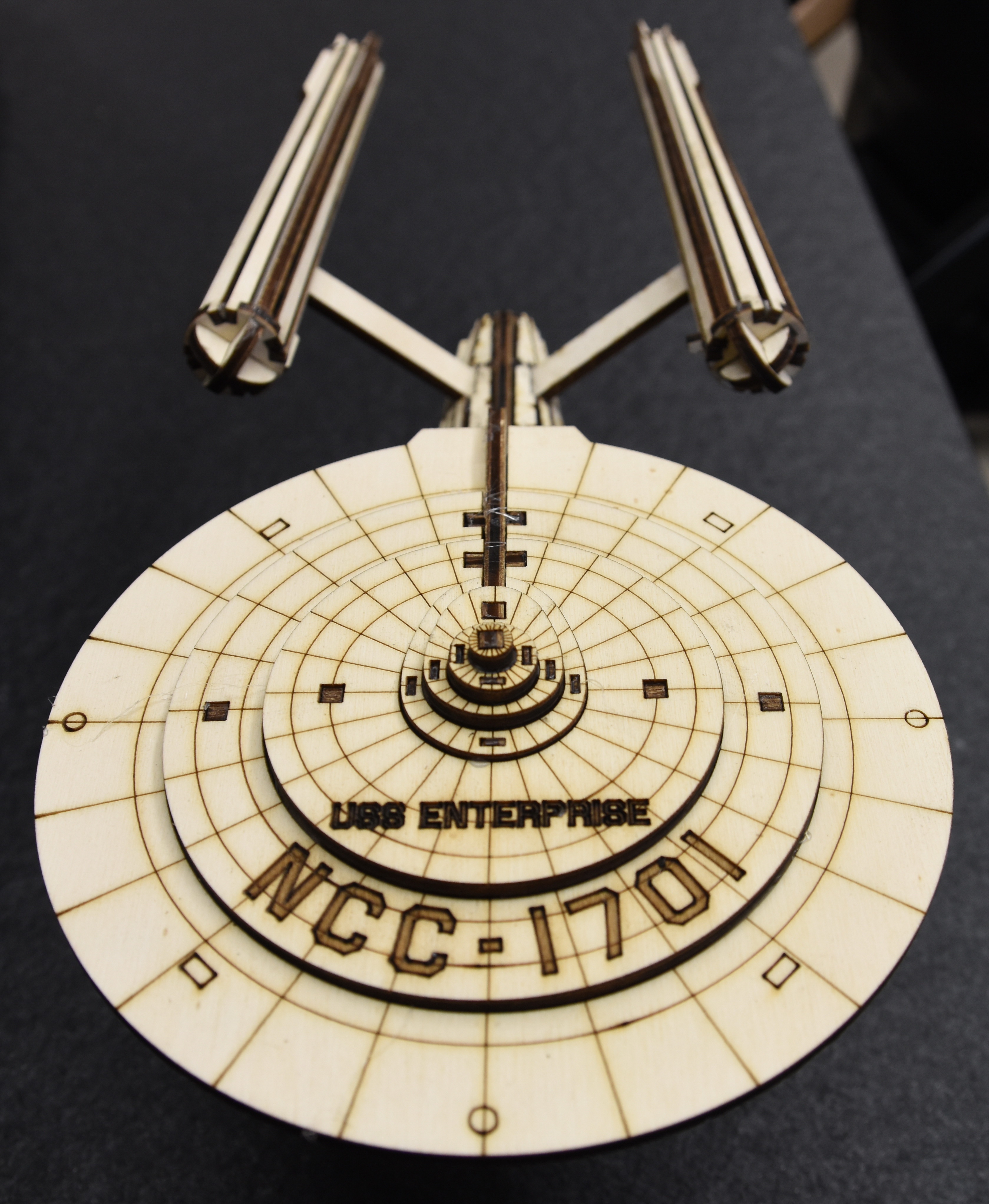 De originele USS Enterprise uit 6mm multiplex. 110 stukken en prachtige details. Komt met gedetailleerde montagehandeleiding. Formaat 60x26x14cm (LxBxH) zonder staander. Middelmatige moeilijkheid. Klemmen en vooral sneldrogende houtlijm maken de klus veel makkelijker. Design by : https://www.thingiverse.com/JoeSnuffie/about